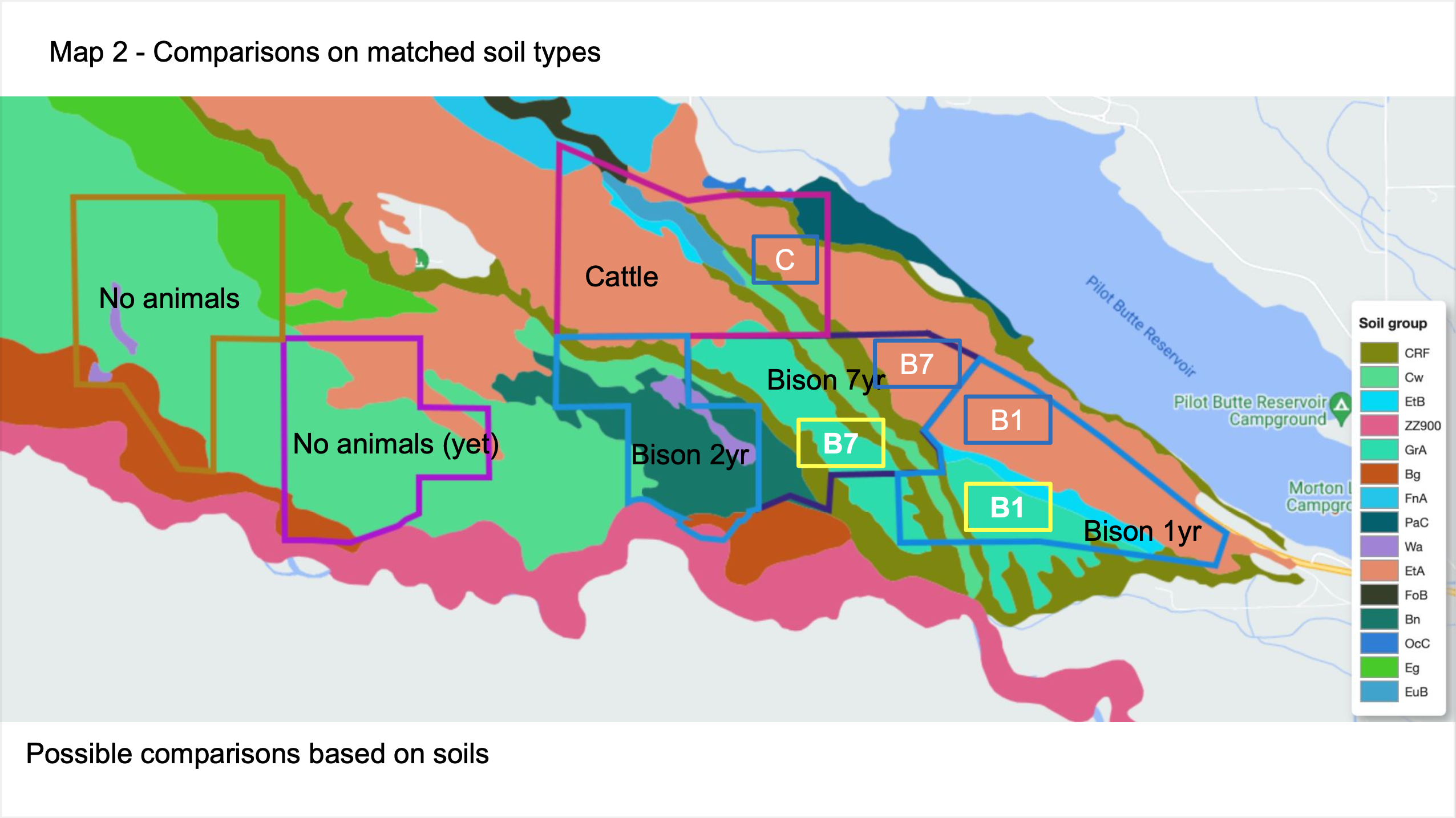 Ultimately, the team determined that on-the-ground measurements of plant community properties as well as soil biogeochemistry would be needed to provide a rigorous answer to the questions pursued in this lab. In addition, an expanded database of additional bison rewilding projects might provide a large enough sample to reveal signals amid the noise of variation across sites. Progress in this lab was incorporated into the plan for CE’s Bison Project, which is now underway on the grasslands of both WRTBI and the Cheyenne and Arapaho tribes in Oklahoma.